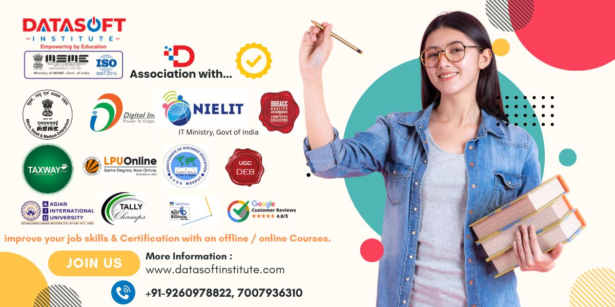 Datasoft Institute is approved by ISO 9001:2015 and governed by Prakash Educational Society, a not-for-profit organisation. Datasoft Institute is approved by MSME, Udyog Adhar, NIELIT (National Institute of Electronics & Information Technology) IT - Ministry (Govt of India).